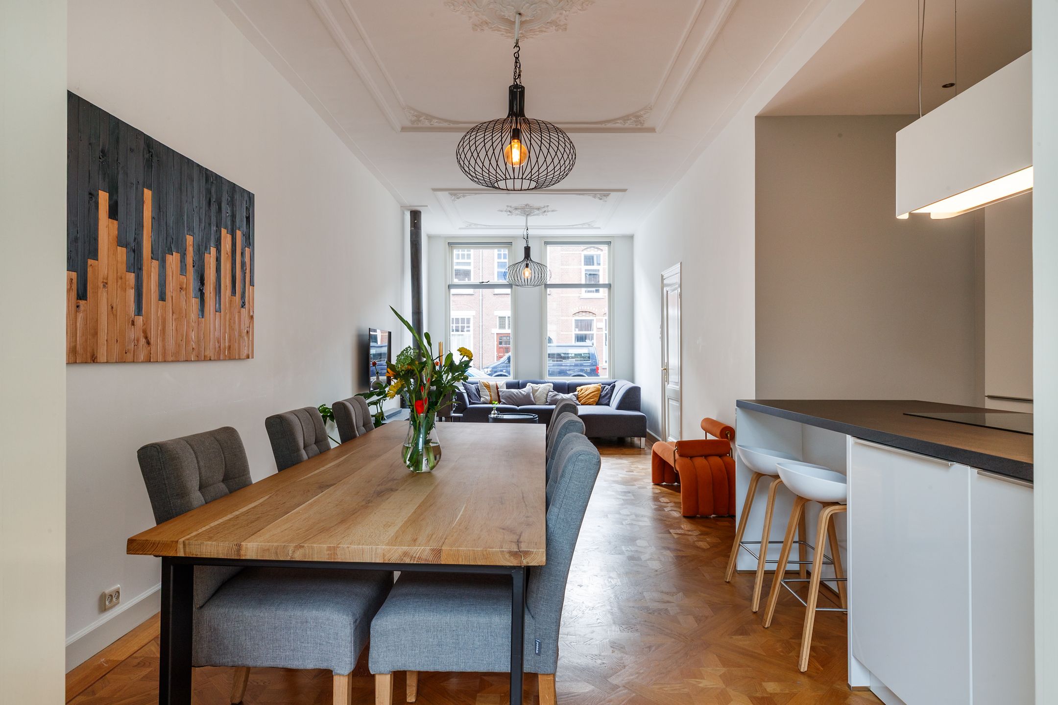 Schitterend geheel gemoderniseerd royaal herenhuis (199 m2) met fijne stadstuin. De woning was voorheen een aparte beneden- en bovenwoning en daarom heeft de woning nog steeds twee huisnummers. Dit huis heeft veel karakter met haar bijzondere indeling en authentieke eigenschappen, zoals de hoge plafonds, ornamenten en mooie gevel en is tegelijkertijd van alle gemakken voorzien door de strakke afwerking in de gehele woning met luxe keuken en badkamer, een unieke 'loft' verdieping en een fijne achtertuin! Deze heerlijke woning is gelegen op de rand van de gezellige Vogelenbuurt en Tuinwijk, direct nabij de binnenstad en het Griftpark (beiden loopafstand). Er zijn vele voorzieningen in de nabije omgeving zoals koffie- en eettentjes, restaurants, supermarkten, bakker, slagerij, kapper, drogist, speeltuinen etc. Kortom, een geweldig huis op een leuke plek in het mooie Utrecht! Indeling Begane grond Entree middels dubbele voordeur en een mooie hal met oude stijlvolle marmeren vloertegels en een ruim modern toilet. Riante sfeervolle woonkamer met hoge plafonds, traditionele ornamenten en een houtkachel. De ruimte is v.v. een prachtige parketvloer en een strakke woonkeuken met een kookeiland, diverse (inbouw)apparatuur zoals Novy afzuigkap en Novy kookplaat, twee Siemens ovens (zelfreinigend en combi), vaatwasser en een Quooker. Aan de woonkamer grenst een serre die ook toegang geeft tot de ruime stadstuin. Achter de keuken is een ruime kamer aanwezig die voor diverse doeleinden gebruikt kan worden (bijkeuken of slaap- of werkkamer). 1e verdieping Overloop met toilet, zeer royale L- vormige slaapkamer over de volledige lengte van het huis v.v. een fraaie parketvloer, hoge plafonds met ornamenten, een sfeervolle houtkachel en een Frans balkon aan de voorzijde en een balkon aan de achterzijde. Badkamer is ruim en luxe afgewerkt met een ligbad, grote inloopdouche, en een mooi opmaat gemaakt houten meubel met dubbele wastafel. Ook aan deze achterzijde is een volwaardige slaapwerkkamer aanwezig welke toegankelijk is via zowel de badkamer als een aparte trap vanaf de begane grond. 2e verdieping In de huidige situatie is dit nu een hele grote mooie open ruimte met een hoog plafond, veel lichtinval door de ramen en de lichtkoepels en met opnieuw een mooie parketvloer (Hongaarse punt). Indien gewenst, zijn hier eenvoudig meerdere kamers te realiseren enof een tweede badkamer of een trap naar het dak voor een eventueel dakterras. Naast deze grote ruimte is er nog een ruime extra slaapkamer met wastafel aanwezig. Kenmerken - Woonoppervlak 199 m2, inhoud van maar liefst 760 m en een perceel van 120 m2; - Hoogwaardig buitenschilderwerk van de gehele woning recent uitgevoerd (2025); - Prachtige parketvloeren (ook doorgelegd op de trappen); - Compleet dak gerenoveerd (2017); - Zonnepanelen 11 stuks (2020); - Energielabel D; - De woning is onlangs bouwkundig gekeurd en het rapport is ter inzage; - Ieder huisnummer kan hier een parkeervergunning krijgen; - De Willem van Noortstraat zal in de toekomst een zogenoemde 'fietsstraat' worden. Dit betekent dat de straat smaller wordt, met fietsers en autos op dezelfde rijbaan. Voor meer informatie zie: https: