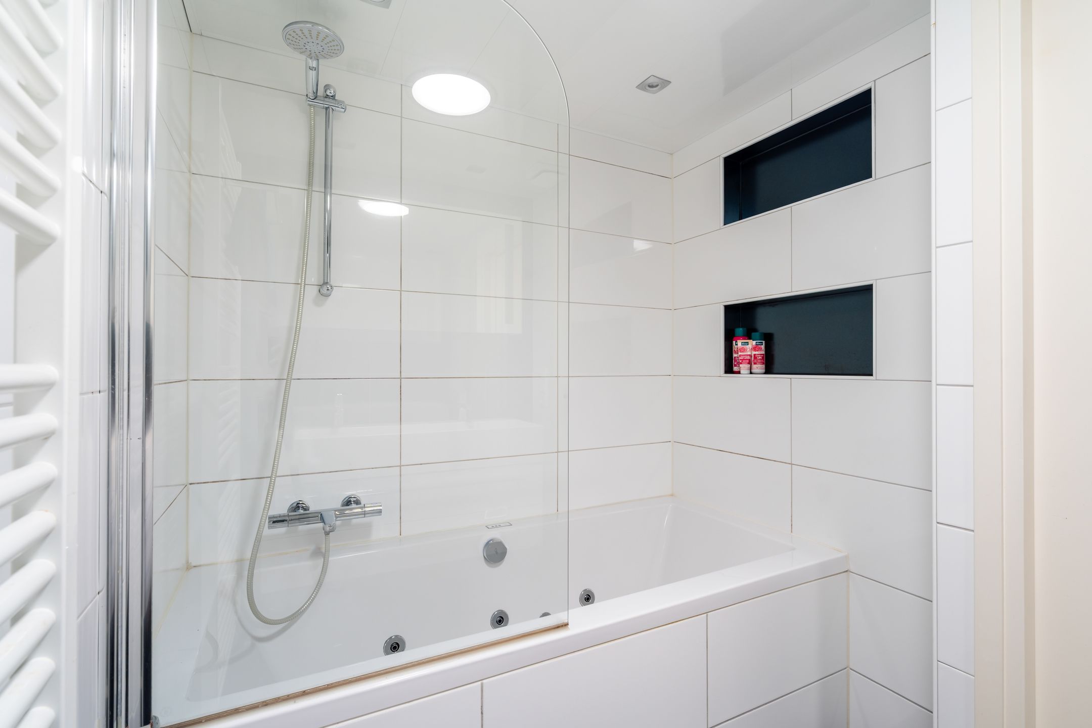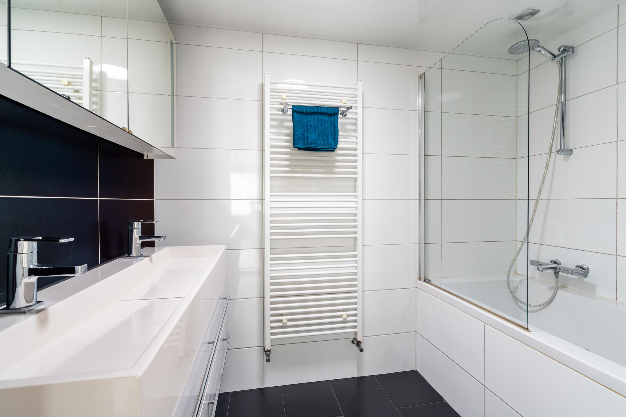 | Fürdőszoba felszerelése | Douche, dubbele wastafel, en ligbad |