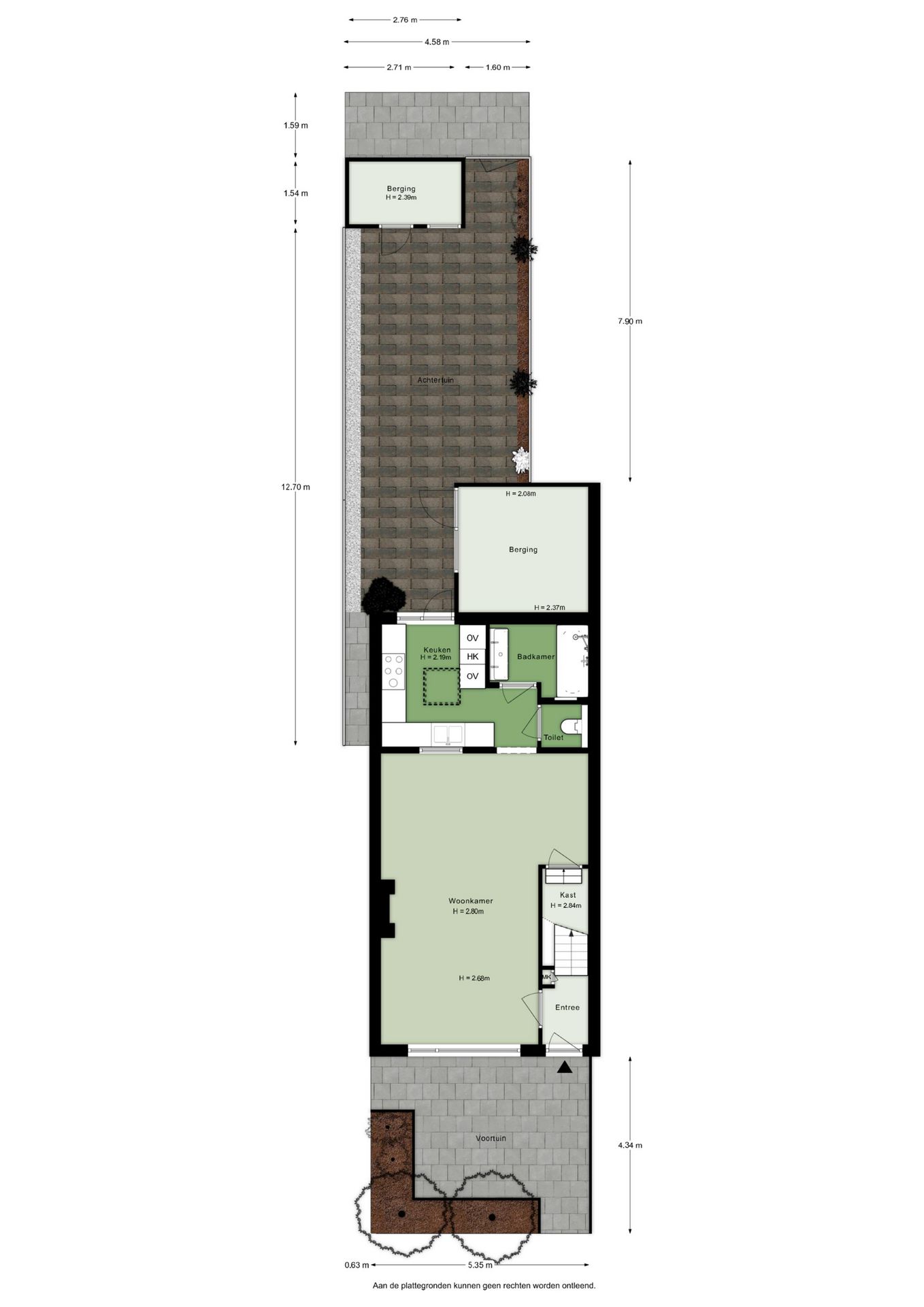 | Kert elrendezése | 36 m2 (7,90 meter diep en 4,58 meter breed) |