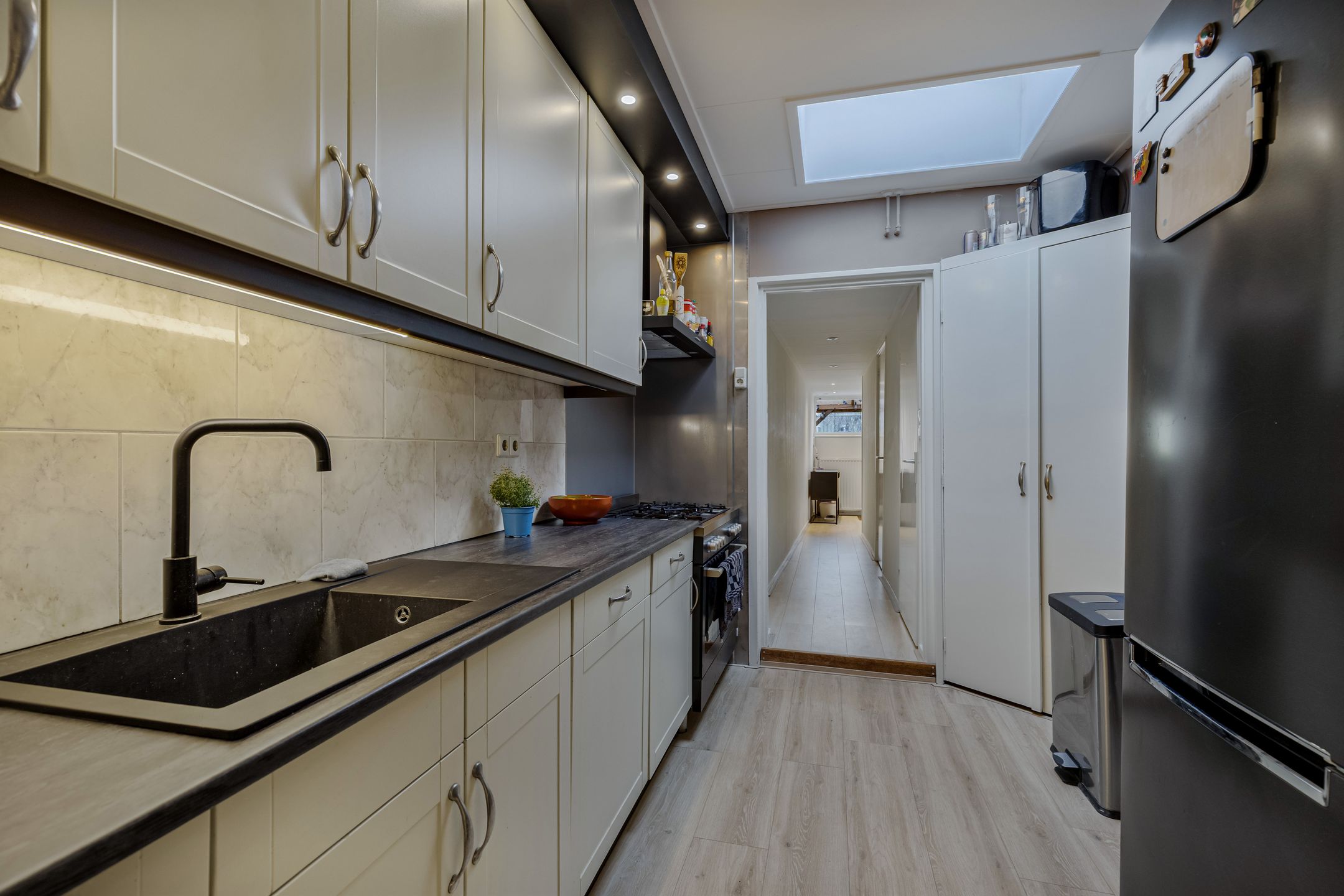 In het centrum staat dit karaktervolle woon-winkelpand met verrassend veel ruimte, zowel binnen als buiten. Het object biedt een combinatie van wonen en werken, met op de begane grond een winkelruimte en daarachter en boven een comfortabele woning. De woning beschikt over een royale woonkamer met eetgedeelte en een tuingerichte serre, waardoor er veel daglicht en een prettige verbinding met buiten ontstaat. Op de verdieping bevinden zich vier slaapkamers en extra bergruimte. Een absolute meerwaarde is de vrijstaande garage met verdieping, voorzien van elektrische overheaddeur, inpandige berging en vaste trap, wat uiteenlopende gebruiksmogelijkheden biedt. Achter het pand ligt een diepe, zonnige achtertuin met achterom, een zeldzaamheid in het centrum. De tuin biedt volop privacy en ruimte om te ontspannen, maar ook parkeermogelijkheden op eigen terrein, wat het geheel extra praktisch maakt. Dankzij de diepte en ligging is er op elk moment van de dag een fijne plek in de zon of schaduw te vinden. Indeling: entree in winkelruimte ( 37 m2) met toiletruimte en kast, bijkeuken ( 6 m2) tussenruimte met keukenblok, woonkamer 33 m2 met eetgedeelte, tuingerichte serre 24 m2, dichte keuken 8 m2 met keukenopstelling v.v. inbouw apparatuur en kelder, badkamer met douche, wastafel en toilet, achterhal met kast trapopgang en witgoedopstelling. Verdieping: overloop met inloopkast met CV-opstelling en toilet, 4 slaapkamers ( 4, 7, 9 en 10 m2). Centrumlocatie Combinatie wonen en werken mogelijk Verwarming middels CV-combi, vloer verwarming en airco Diepe achtertuin met achterom Parkeergelegenheid op eigen terrein voor meerdere autos en achteruitgang Vrijstaande garage met verdieping v.v. elektrische deur, bergruimte en vele mogelijkheden