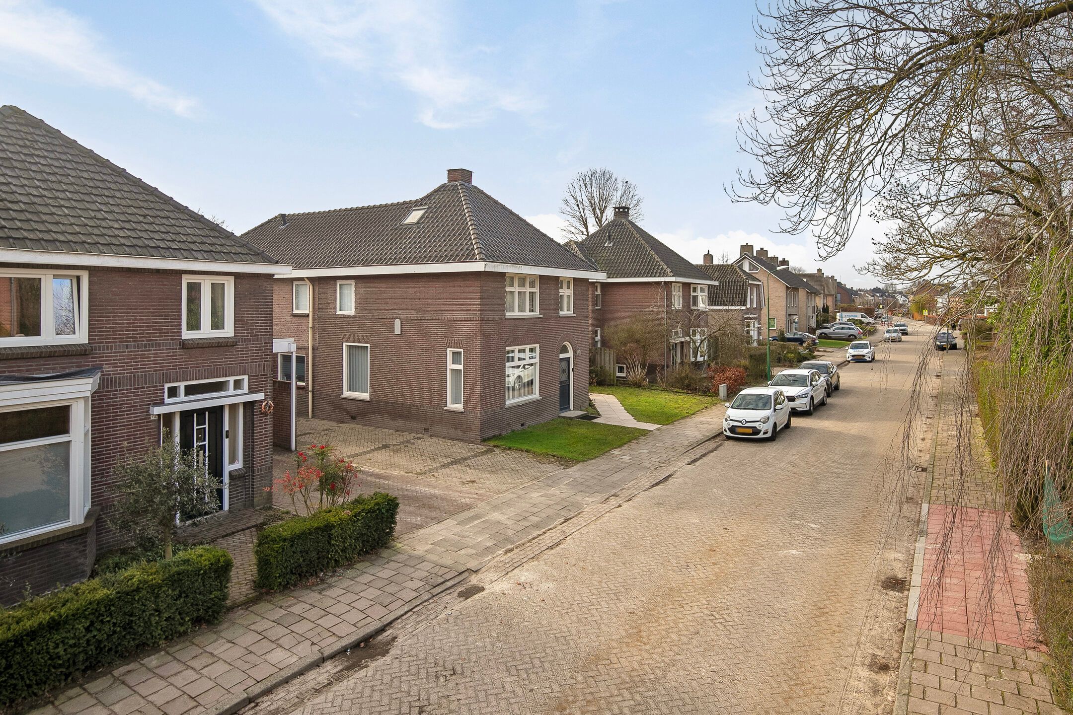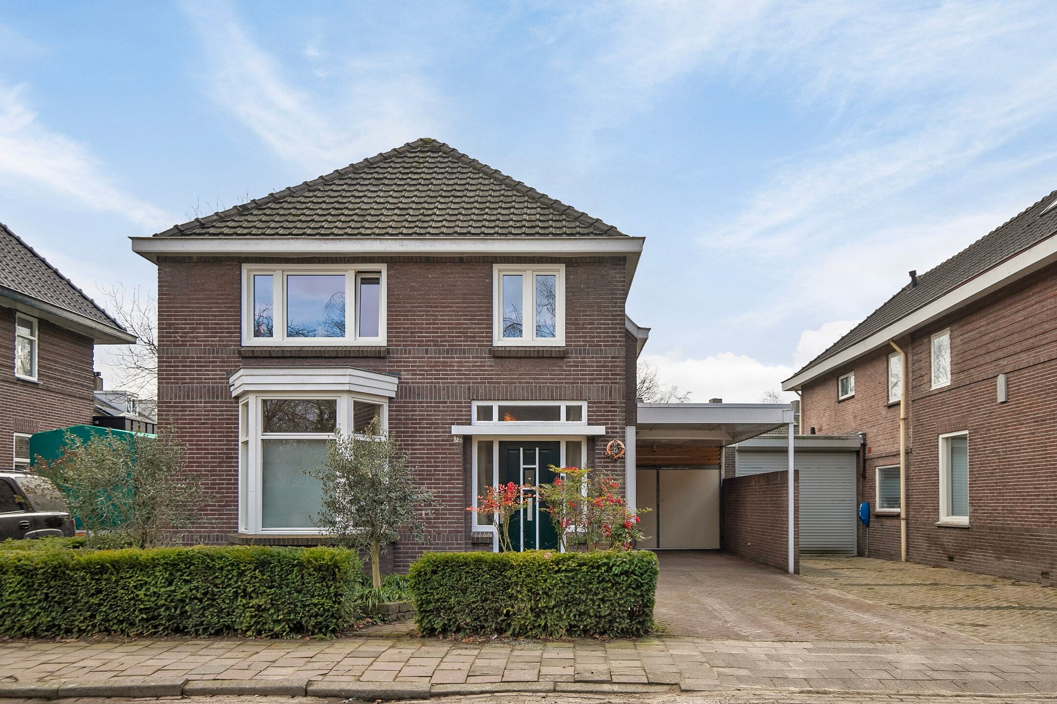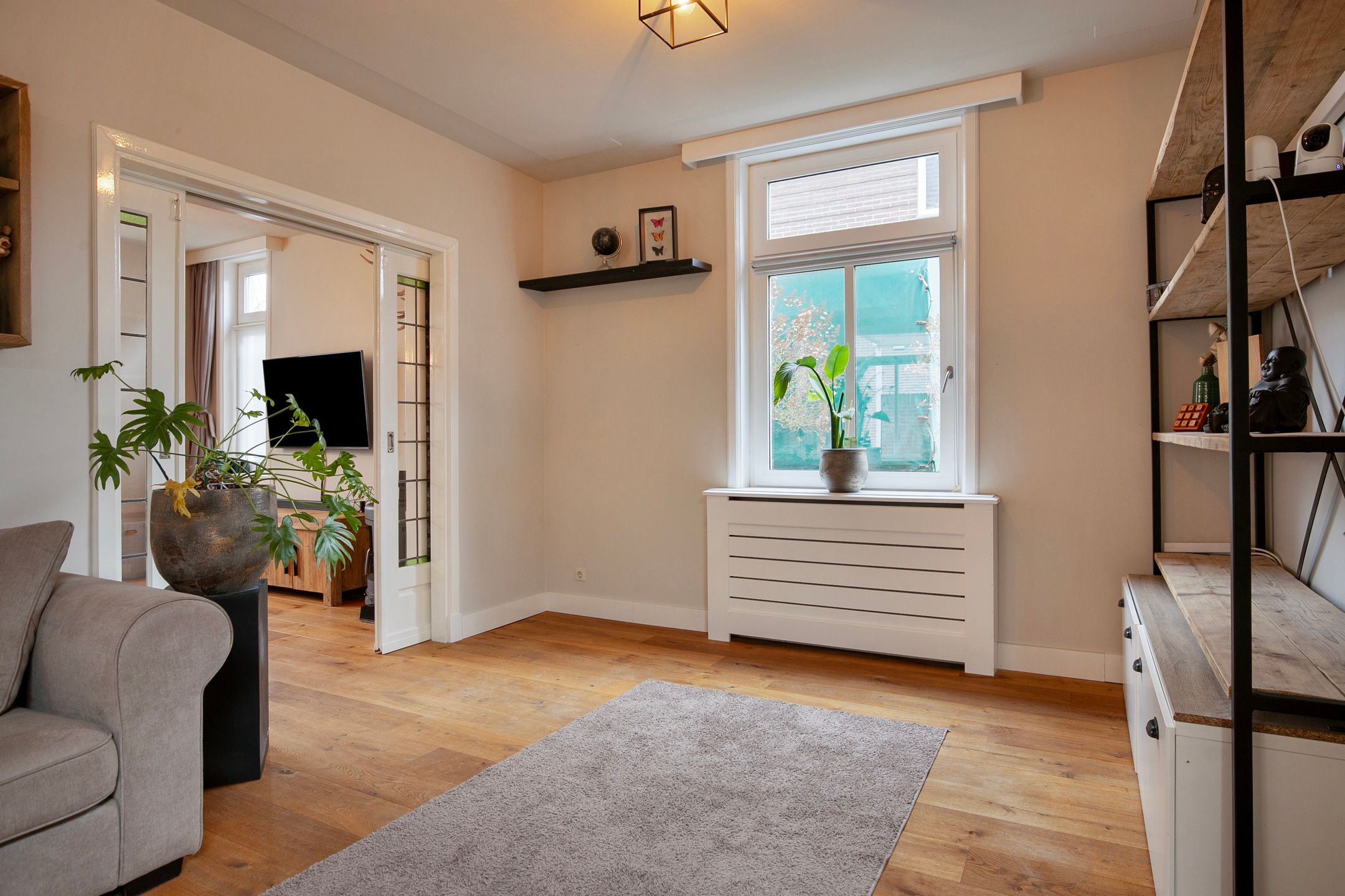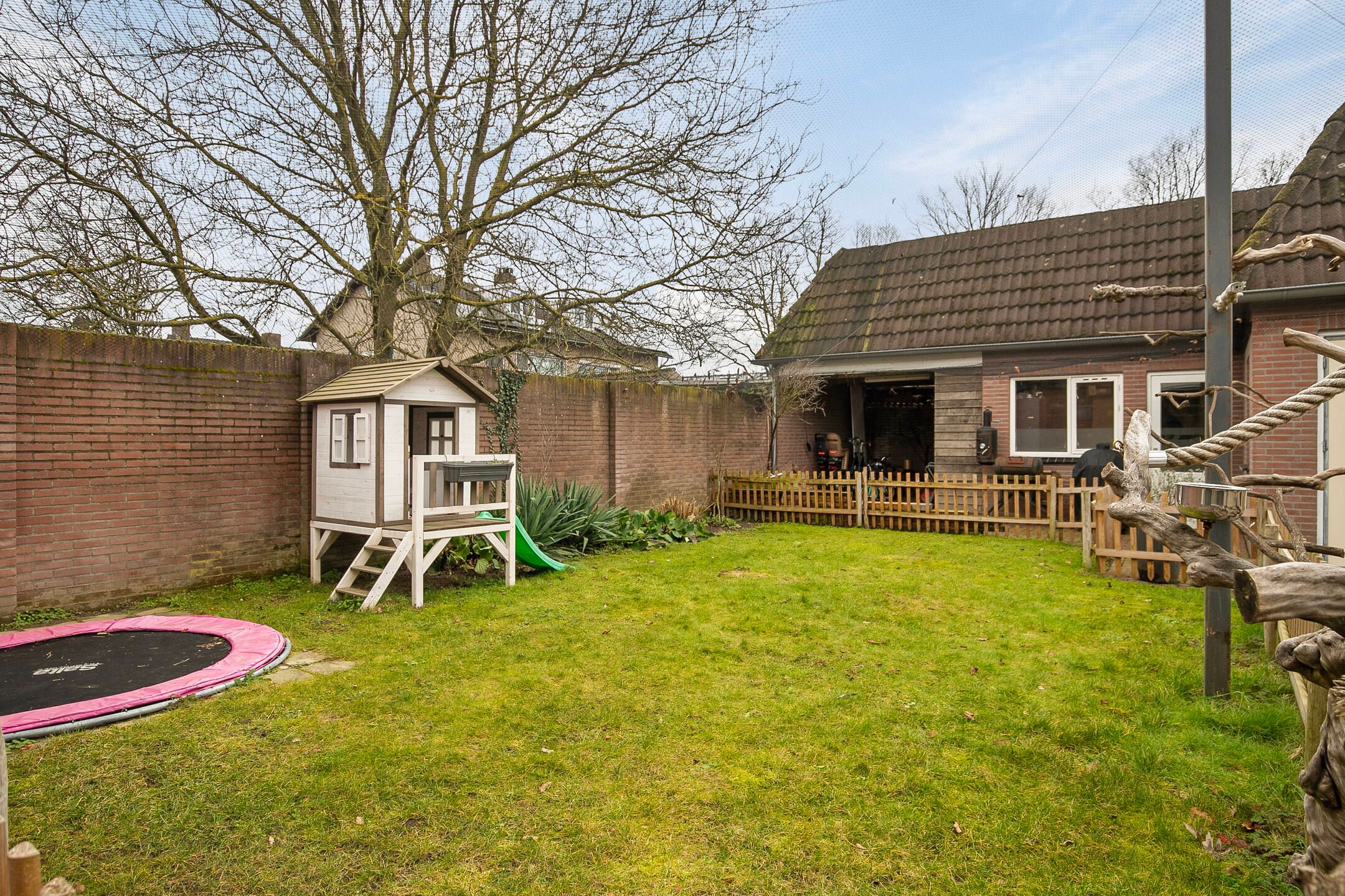Deze volledige in stijl gerenoveerde en gemoderniseerde, vrijstaande jaren '30 woning komt beschikbaar voor een nieuwe eigenaar, die op zoek is naar een hoogwaardig afgewerkte, karaktervolle woning met o.a. woonkamer-en-suite, royale woonkeuken, vijf slaapkamers, luxe badkamer (2025) en een vrij gelegen achtertuin op de zonzijde met grote garagebijgebouw ten behoeve van hobby-praktijkmantelzorg aan huis. Gelegen op een gewilde woonlocatie aan een rustige woonstraat in Veldhoven-Dorp op korte afstand van voorzieningen zoals winkels, scholen, openbaar vervoer verbindingen en uitvalswegen. Bouwjaar: ca. 1930 Perceeloppervlakte: 404m2 Woonoppervlakte: ca. 169m2 Overige inpandige ruimte: ca. 6m2 Gebouwgebonden buitenruimte: ca. 43m2 Externe bergruimte: ca. 67m2 Inhoud: ca. 647m3 Aanvaarding: in overleg Indeling begane grond: Aangelegde voortuin. Ontvangsthal met authentieke, geblokte tegelvloer, trapopgang, meterkast (11 groepen, 3 aardlekschakelaars, glasvezelaansluiting). Sfeervolle, Z-vormige woonkamer-en-suite met een eikenhouten planken parketvloer met vloerverwarming, houtkachel, erkerraam, dubbele tuindeuren en deur met toegang tot een praktische kelder. De woonkeuken is royaal van formaat en is in 2016 geheel vernieuwd met een complete, moderne inrichting voorzien van 5-pits gaskookplaat, afzuigkap, vaatwasser, heteluchtoven, combi oven-magnetron, Amerikaanse koelkast en diverse kastjes en laden. De keuken is afgewerkt met een warme, hardstenen tegelvloer met vloerverwarming. (Koelkast ter overname) Achterportaalbijkeuken met hardstenen vloer met vloerverwarming, deur met toegang tot de tuin, garderobe en een praktische schuifkastenwand, waarachter de aansluitingen t.b.v. de wasapparatuur en de cv-combiketel (Intergas Extreme 36, eigendom, bouwjaar 2025)) zich bevinden. Luxe uitgevoerde, in 2025 vernieuwde toiletruimte met hangcloset, urinoir en wastafeltje. De achtertuin is ruim bemeten, heeft een optimale privacy en is gelegen op het zonnige zuidoosten. De tuin is voorzien van een grote terrasoverkapping en een glazenwand, sierbestrating, gazon, buitenkraantje en een brede achterom (bijvoorbeeld t.b.v auto of caravan). Achter in de tuin bevindt zich de multifunctionele garagebijgebouw, ideaal voor werkhobbymantelzorg aan huis. Deze L-vormige ruimte is in spouwmuur opgetrokken en uitgerust met elektra, garagedeur, separate loopdeur, bergkast en een grote verdieping, ideaal voor berging enof speel-hobbykamer. Indeling eerste verdieping: Overloop met laminaatvloer. Voorslaapkamer 1, met laminaatvloer. Voorslaapkamer 2, met laminaatvloer en een ingebouwde kast met fraaie schuifdeur. Achterslaapkamer 3, met laminaatvloer. Moderne, deels betegelde toiletruimte met hangcloset en mechanische ventilatie. Luxe uitgevoerde, in 2025 vernieuwde badkamer met duo ligbad, separate inloopdouche, dubbele wastafel in meubel, vloerverwarming en decorradiator. Zijslaapkamer 4, met laminaatvloer, fraai hoog oplopend plafond, wastafelmeubel en ingebouwde kastenwand. Achterslaapkamer 5, met laminaatvloer, fraai hoog oplopend plafond, airconditioning, wastafelmeubel, schuifkastenwand en dakkapel. Indeling tweede verdieping: Middels een vlizotrapverbinding te bereiken ruime en praktische zolderberging. Algemeen: De woning is uiterst sfeervol en hoogwaardig gerenoveerd en gemoderniseerd, waarbij met respect omgegaan is met de karaktervolle elementen uit de jaren 30. Denk hierbij aan de woonkamer-en-suite, paneeldeuren en een royale woonkeuken. De woning is voorzien van vloerisolatie, gevelisolatie en isolerende (grotendeels HR++, deel triple HR) beglazingen. Er zijn 6 zonnepanelen ( 325Wp) in eigendom aanwezig. Energielabel C aanwezig. De kozijnen zijn deels in hout, deels in kunststof uitgevoerd. In 2008 is de elektrische installatie van de woning vernieuwd. In 2025 zijn de toiletruimte op de begane grond, de badkamer en de cv-ketel vernieuwd. In 2026 is de platdak bedekking van de overkapping en carport vernieuwd. De begane grond en badkamer en toilet op de verdieping zijn uitgerust met vloerverwarming. Gelegen op een gewilde locatie aan een brede woonstraat in Veldhoven-Dorp. Op korte afstand zijn winkels, scholen, restaurants, sportaccommodaties, openbaar vervoer verbindingen en uitvalswegen bereikbaar.