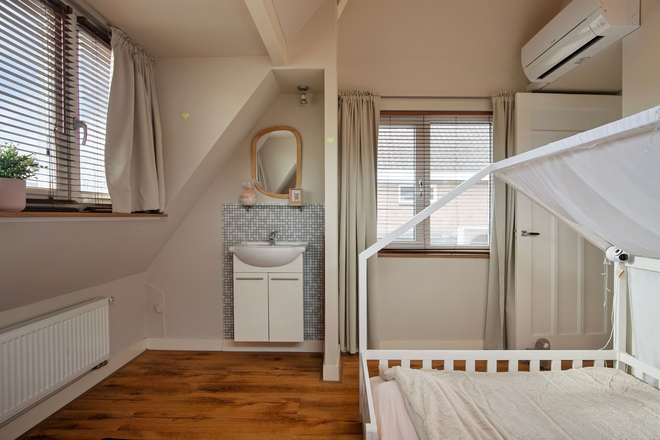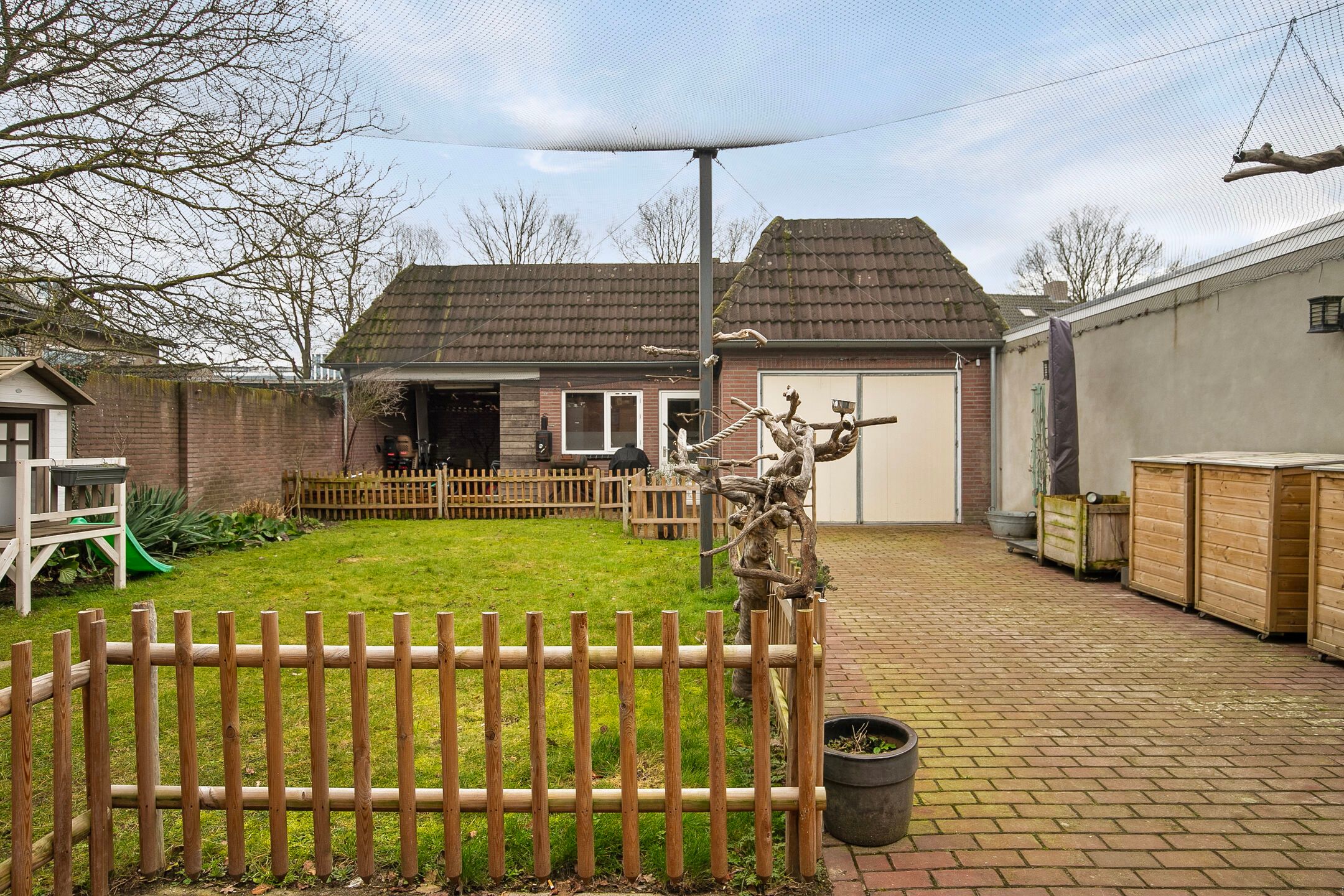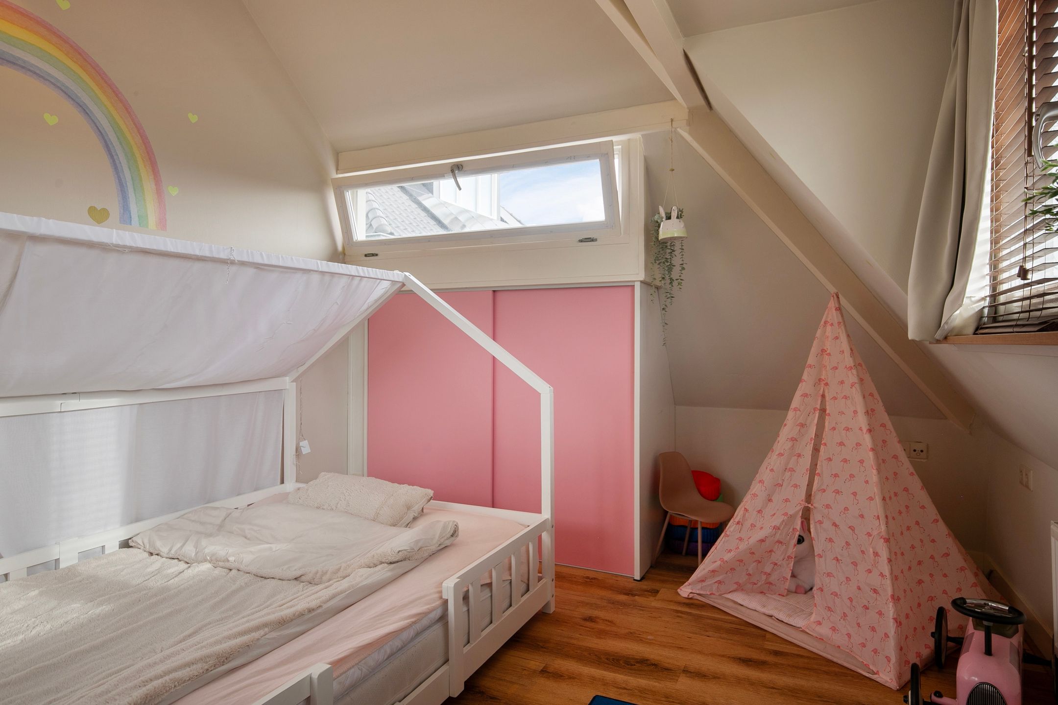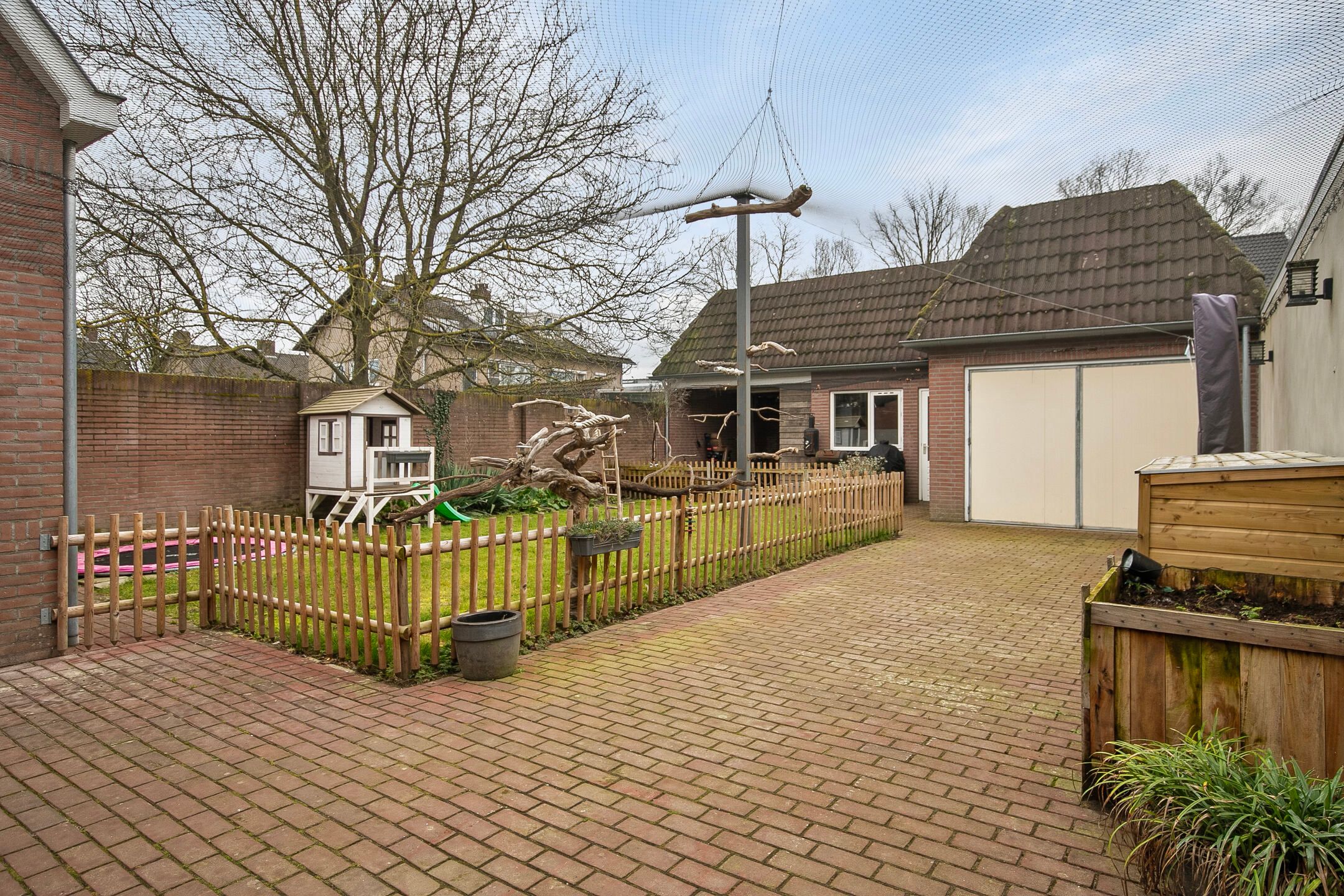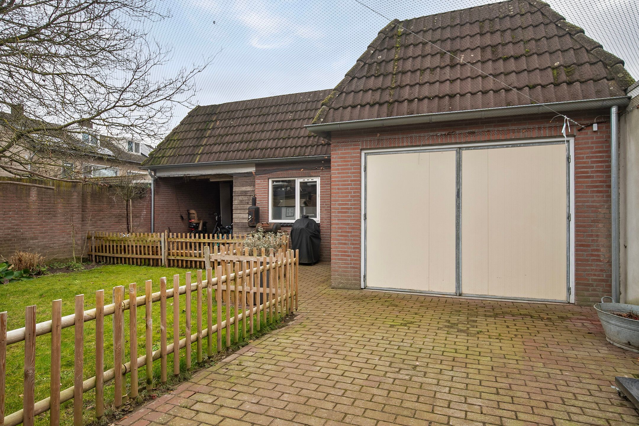 Deze volledige in stijl gerenoveerde en gemoderniseerde, vrijstaande jaren '30 woning komt beschikbaar voor een nieuwe eigenaar, die op zoek is naar een hoogwaardig afgewerkte, karaktervolle woning met o.a. woonkamer-en-suite, royale woonkeuken, vijf slaapkamers, luxe badkamer (2025) en een vrij gelegen achtertuin op de zonzijde met grote garagebijgebouw ten behoeve van hobby-praktijkmantelzorg aan huis. Gelegen op een gewilde woonlocatie aan een rustige woonstraat in Veldhoven-Dorp op korte afstand van voorzieningen zoals winkels, scholen, openbaar vervoer verbindingen en uitvalswegen. Bouwjaar: ca. 1930 Perceeloppervlakte: 404m2 Woonoppervlakte: ca. 169m2 Overige inpandige ruimte: ca. 6m2 Gebouwgebonden buitenruimte: ca. 43m2 Externe bergruimte: ca. 67m2 Inhoud: ca. 647m3 Aanvaarding: in overleg Indeling begane grond: Aangelegde voortuin. Ontvangsthal met authentieke, geblokte tegelvloer, trapopgang, meterkast (11 groepen, 3 aardlekschakelaars, glasvezelaansluiting). Sfeervolle, Z-vormige woonkamer-en-suite met een eikenhouten planken parketvloer met vloerverwarming, houtkachel, erkerraam, dubbele tuindeuren en deur met toegang tot een praktische kelder. De woonkeuken is royaal van formaat en is in 2016 geheel vernieuwd met een complete, moderne inrichting voorzien van 5-pits gaskookplaat, afzuigkap, vaatwasser, heteluchtoven, combi oven-magnetron, Amerikaanse koelkast en diverse kastjes en laden. De keuken is afgewerkt met een warme, hardstenen tegelvloer met vloerverwarming. (Koelkast ter overname) Achterportaalbijkeuken met hardstenen vloer met vloerverwarming, deur met toegang tot de tuin, garderobe en een praktische schuifkastenwand, waarachter de aansluitingen t.b.v. de wasapparatuur en de cv-combiketel (Intergas Extreme 36, eigendom, bouwjaar 2025)) zich bevinden. Luxe uitgevoerde, in 2025 vernieuwde toiletruimte met hangcloset, urinoir en wastafeltje. De achtertuin is ruim bemeten, heeft een optimale privacy en is gelegen op het zonnige zuidoosten. De tuin is voorzien van een grote terrasoverkapping en een glazenwand, sierbestrating, gazon, buitenkraantje en een brede achterom (bijvoorbeeld t.b.v auto of caravan). Achter in de tuin bevindt zich de multifunctionele garagebijgebouw, ideaal voor werkhobbymantelzorg aan huis. Deze L-vormige ruimte is in spouwmuur opgetrokken en uitgerust met elektra, garagedeur, separate loopdeur, bergkast en een grote verdieping, ideaal voor berging enof speel-hobbykamer. Indeling eerste verdieping: Overloop met laminaatvloer. Voorslaapkamer 1, met laminaatvloer. Voorslaapkamer 2, met laminaatvloer en een ingebouwde kast met fraaie schuifdeur. Achterslaapkamer 3, met laminaatvloer. Moderne, deels betegelde toiletruimte met hangcloset en mechanische ventilatie. Luxe uitgevoerde, in 2025 vernieuwde badkamer met duo ligbad, separate inloopdouche, dubbele wastafel in meubel, vloerverwarming en decorradiator. Zijslaapkamer 4, met laminaatvloer, fraai hoog oplopend plafond, wastafelmeubel en ingebouwde kastenwand. Achterslaapkamer 5, met laminaatvloer, fraai hoog oplopend plafond, airconditioning, wastafelmeubel, schuifkastenwand en dakkapel. Indeling tweede verdieping: Middels een vlizotrapverbinding te bereiken ruime en praktische zolderberging. Algemeen: De woning is uiterst sfeervol en hoogwaardig gerenoveerd en gemoderniseerd, waarbij met respect omgegaan is met de karaktervolle elementen uit de jaren 30. Denk hierbij aan de woonkamer-en-suite, paneeldeuren en een royale woonkeuken. De woning is voorzien van vloerisolatie, gevelisolatie en isolerende (grotendeels HR++, deel triple HR) beglazingen. Er zijn 6 zonnepanelen ( 325Wp) in eigendom aanwezig. Energielabel C aanwezig. De kozijnen zijn deels in hout, deels in kunststof uitgevoerd. In 2008 is de elektrische installatie van de woning vernieuwd. In 2025 zijn de toiletruimte op de begane grond, de badkamer en de cv-ketel vernieuwd. In 2026 is de platdak bedekking van de overkapping en carport vernieuwd. De begane grond en badkamer en toilet op de verdieping zijn uitgerust met vloerverwarming. Gelegen op een gewilde locatie aan een brede woonstraat in Veldhoven-Dorp. Op korte afstand zijn winkels, scholen, restaurants, sportaccommodaties, openbaar vervoer verbindingen en uitvalswegen bereikbaar.