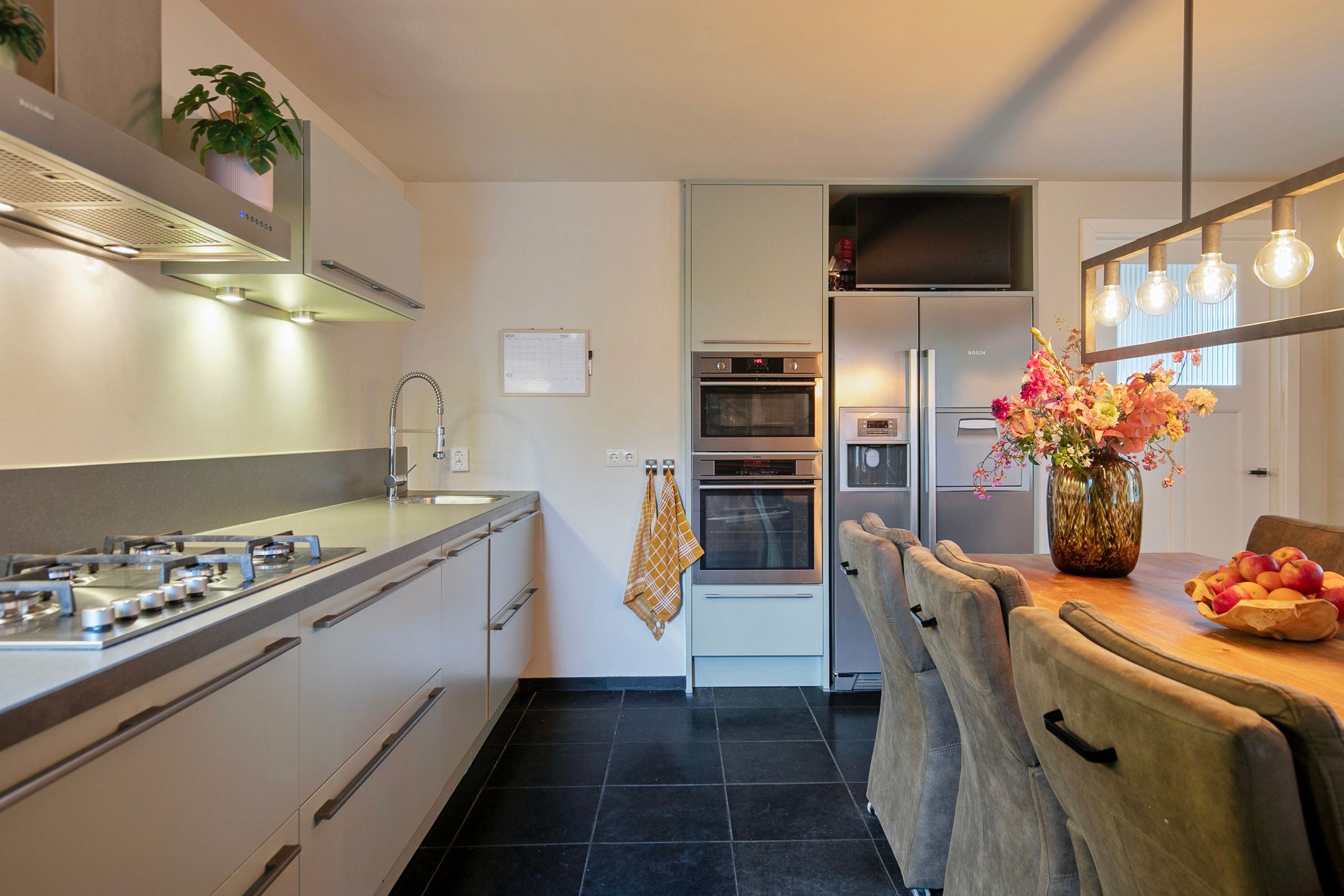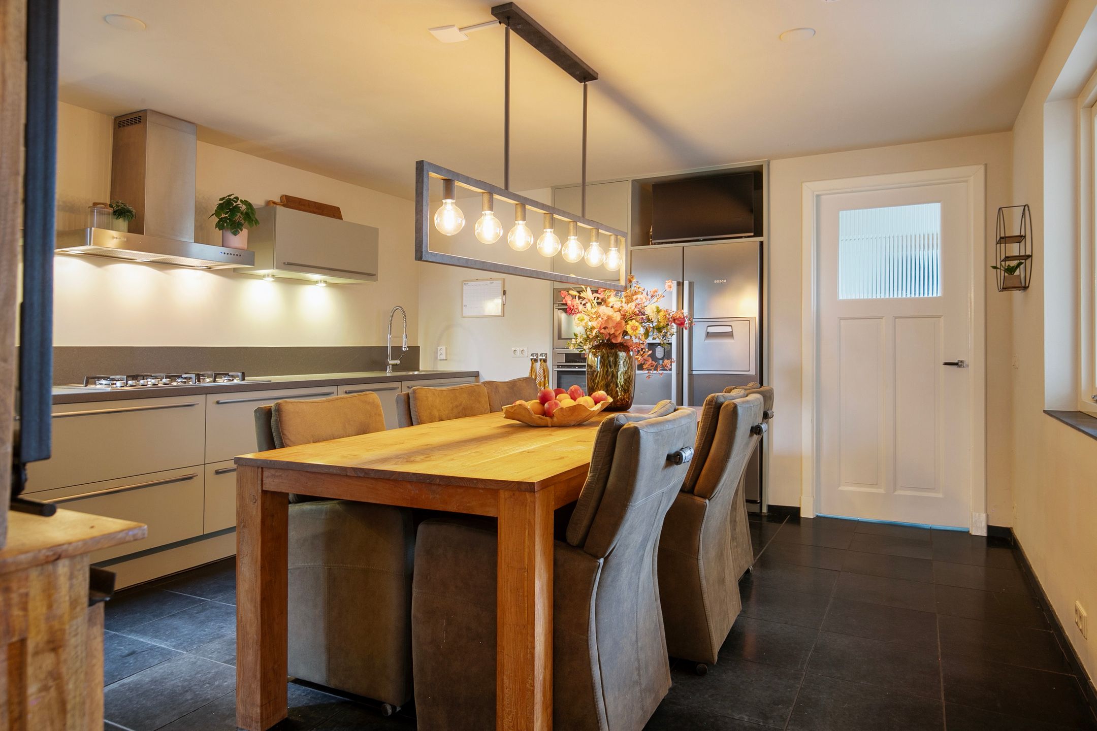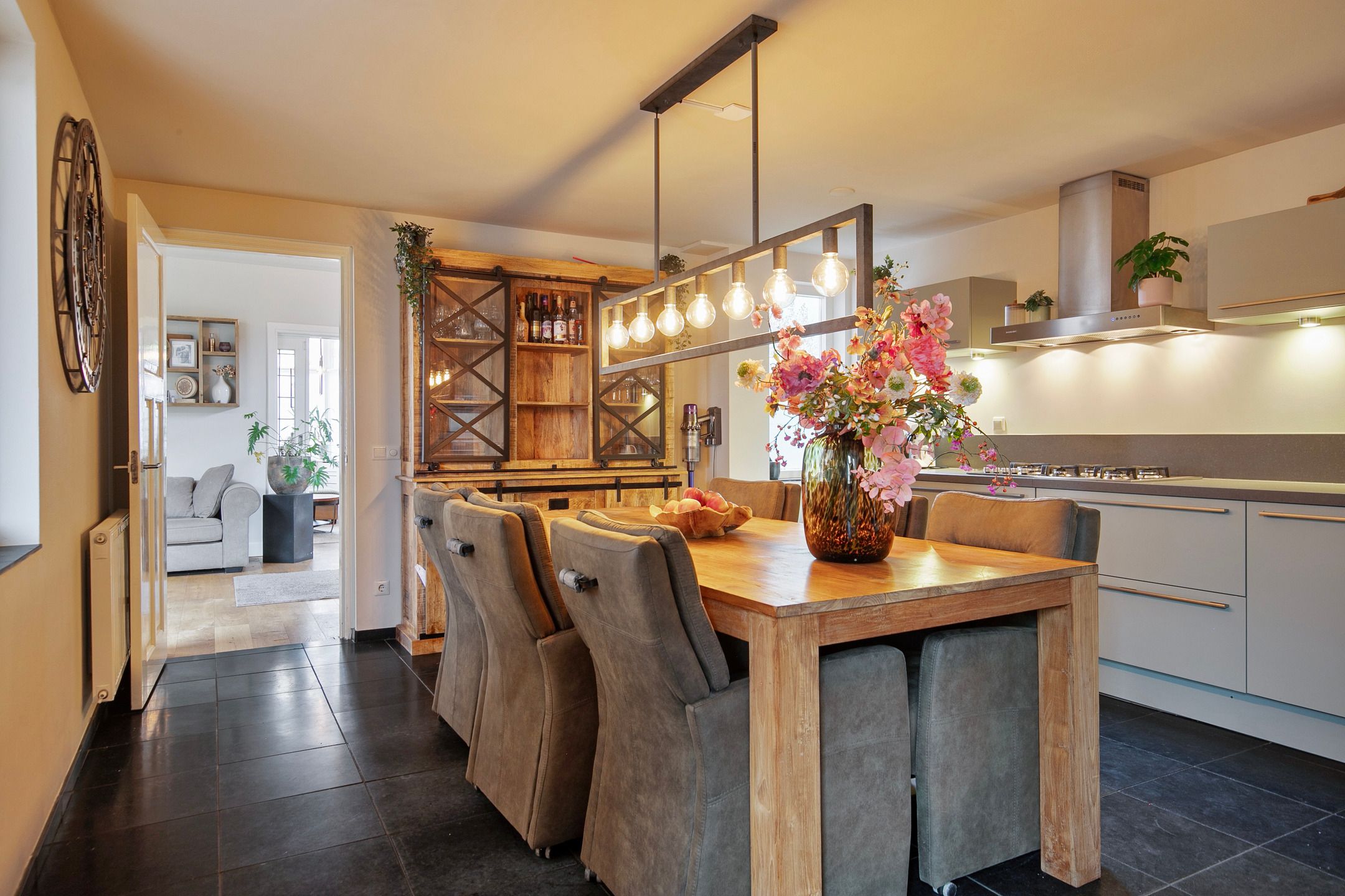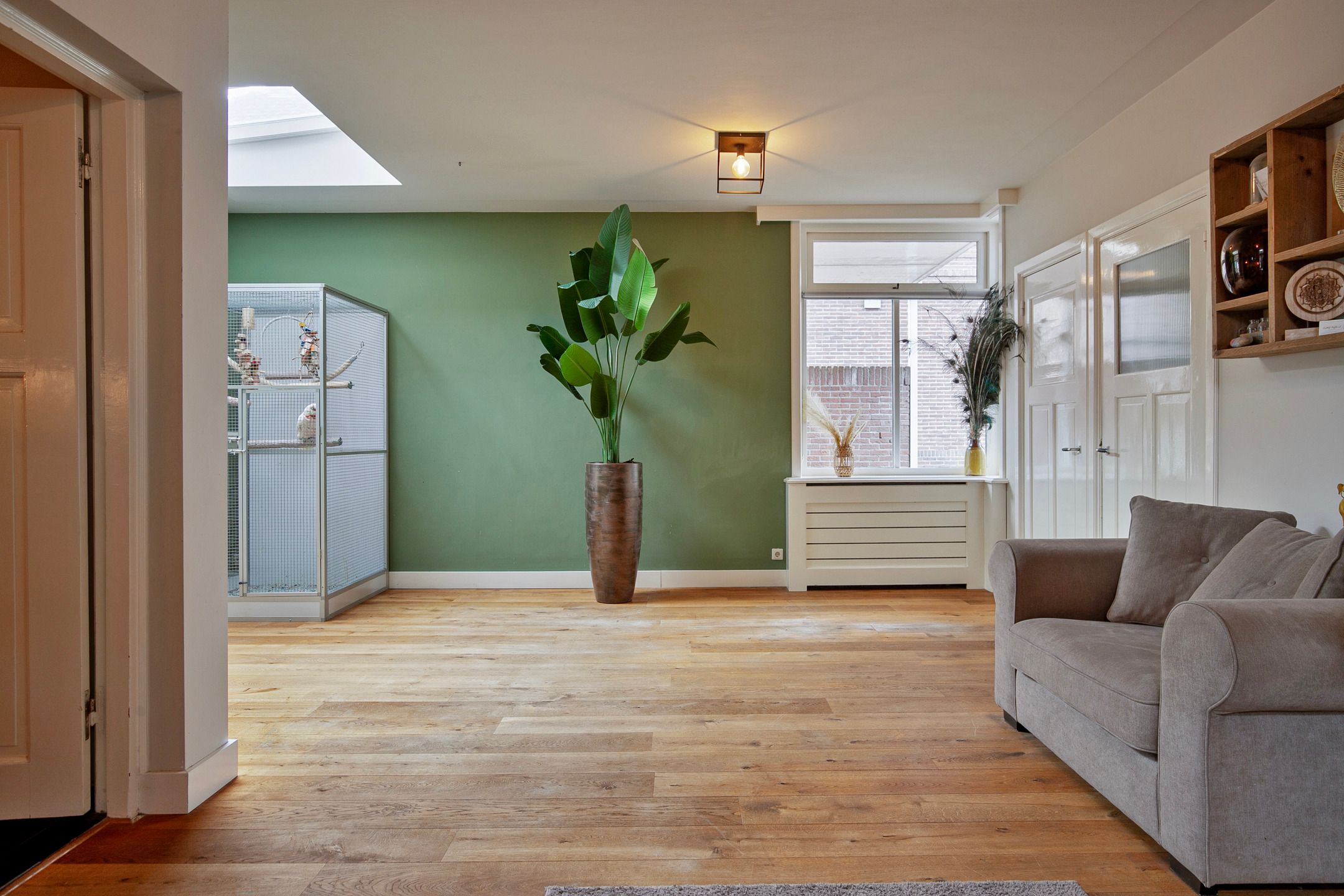 Deze volledige in stijl gerenoveerde en gemoderniseerde, vrijstaande jaren '30 woning komt beschikbaar voor een nieuwe eigenaar, die op zoek is naar een hoogwaardig afgewerkte, karaktervolle woning met o.a. woonkamer-en-suite, royale woonkeuken, vijf slaapkamers, luxe badkamer (2025) en een vrij gelegen achtertuin op de zonzijde met grote garagebijgebouw ten behoeve van hobby-praktijkmantelzorg aan huis. Gelegen op een gewilde woonlocatie aan een rustige woonstraat in Veldhoven-Dorp op korte afstand van voorzieningen zoals winkels, scholen, openbaar vervoer verbindingen en uitvalswegen. Bouwjaar: ca. 1930 Perceeloppervlakte: 404m2 Woonoppervlakte: ca. 169m2 Overige inpandige ruimte: ca. 6m2 Gebouwgebonden buitenruimte: ca. 43m2 Externe bergruimte: ca. 67m2 Inhoud: ca. 647m3 Aanvaarding: in overleg Indeling begane grond: Aangelegde voortuin. Ontvangsthal met authentieke, geblokte tegelvloer, trapopgang, meterkast (11 groepen, 3 aardlekschakelaars, glasvezelaansluiting). Sfeervolle, Z-vormige woonkamer-en-suite met een eikenhouten planken parketvloer met vloerverwarming, houtkachel, erkerraam, dubbele tuindeuren en deur met toegang tot een praktische kelder. De woonkeuken is royaal van formaat en is in 2016 geheel vernieuwd met een complete, moderne inrichting voorzien van 5-pits gaskookplaat, afzuigkap, vaatwasser, heteluchtoven, combi oven-magnetron, Amerikaanse koelkast en diverse kastjes en laden. De keuken is afgewerkt met een warme, hardstenen tegelvloer met vloerverwarming. (Koelkast ter overname) Achterportaalbijkeuken met hardstenen vloer met vloerverwarming, deur met toegang tot de tuin, garderobe en een praktische schuifkastenwand, waarachter de aansluitingen t.b.v. de wasapparatuur en de cv-combiketel (Intergas Extreme 36, eigendom, bouwjaar 2025)) zich bevinden. Luxe uitgevoerde, in 2025 vernieuwde toiletruimte met hangcloset, urinoir en wastafeltje. De achtertuin is ruim bemeten, heeft een optimale privacy en is gelegen op het zonnige zuidoosten. De tuin is voorzien van een grote terrasoverkapping en een glazenwand, sierbestrating, gazon, buitenkraantje en een brede achterom (bijvoorbeeld t.b.v auto of caravan). Achter in de tuin bevindt zich de multifunctionele garagebijgebouw, ideaal voor werkhobbymantelzorg aan huis. Deze L-vormige ruimte is in spouwmuur opgetrokken en uitgerust met elektra, garagedeur, separate loopdeur, bergkast en een grote verdieping, ideaal voor berging enof speel-hobbykamer. Indeling eerste verdieping: Overloop met laminaatvloer. Voorslaapkamer 1, met laminaatvloer. Voorslaapkamer 2, met laminaatvloer en een ingebouwde kast met fraaie schuifdeur. Achterslaapkamer 3, met laminaatvloer. Moderne, deels betegelde toiletruimte met hangcloset en mechanische ventilatie. Luxe uitgevoerde, in 2025 vernieuwde badkamer met duo ligbad, separate inloopdouche, dubbele wastafel in meubel, vloerverwarming en decorradiator. Zijslaapkamer 4, met laminaatvloer, fraai hoog oplopend plafond, wastafelmeubel en ingebouwde kastenwand. Achterslaapkamer 5, met laminaatvloer, fraai hoog oplopend plafond, airconditioning, wastafelmeubel, schuifkastenwand en dakkapel. Indeling tweede verdieping: Middels een vlizotrapverbinding te bereiken ruime en praktische zolderberging. Algemeen: De woning is uiterst sfeervol en hoogwaardig gerenoveerd en gemoderniseerd, waarbij met respect omgegaan is met de karaktervolle elementen uit de jaren 30. Denk hierbij aan de woonkamer-en-suite, paneeldeuren en een royale woonkeuken. De woning is voorzien van vloerisolatie, gevelisolatie en isolerende (grotendeels HR++, deel triple HR) beglazingen. Er zijn 6 zonnepanelen ( 325Wp) in eigendom aanwezig. Energielabel C aanwezig. De kozijnen zijn deels in hout, deels in kunststof uitgevoerd. In 2008 is de elektrische installatie van de woning vernieuwd. In 2025 zijn de toiletruimte op de begane grond, de badkamer en de cv-ketel vernieuwd. In 2026 is de platdak bedekking van de overkapping en carport vernieuwd. De begane grond en badkamer en toilet op de verdieping zijn uitgerust met vloerverwarming. Gelegen op een gewilde locatie aan een brede woonstraat in Veldhoven-Dorp. Op korte afstand zijn winkels, scholen, restaurants, sportaccommodaties, openbaar vervoer verbindingen en uitvalswegen bereikbaar.